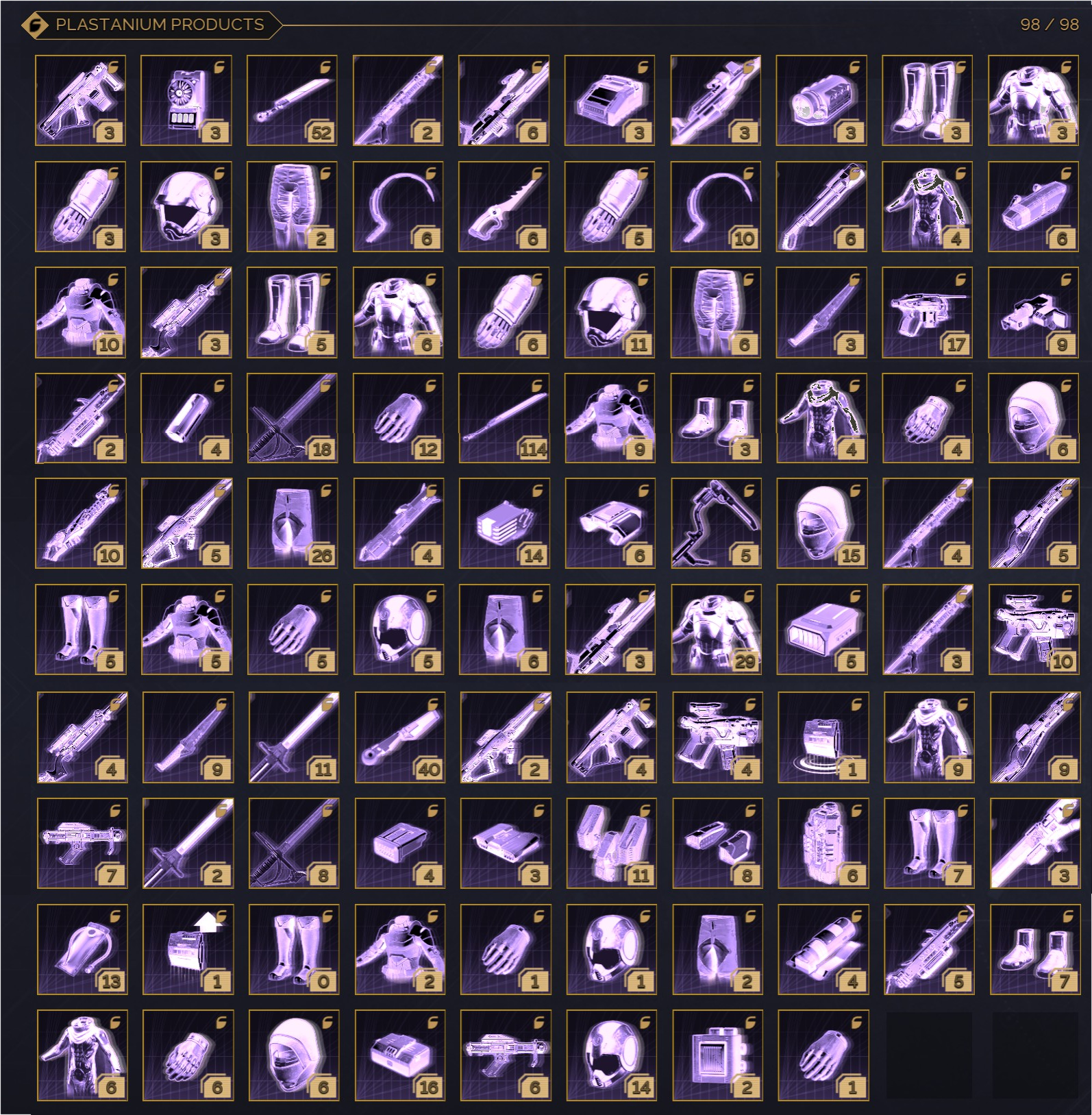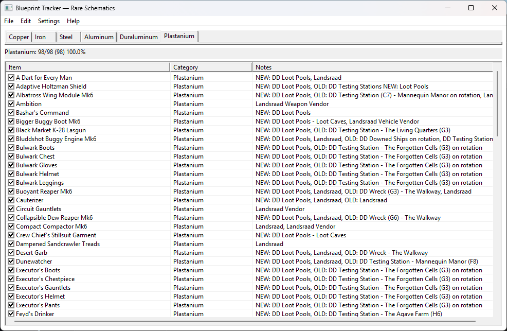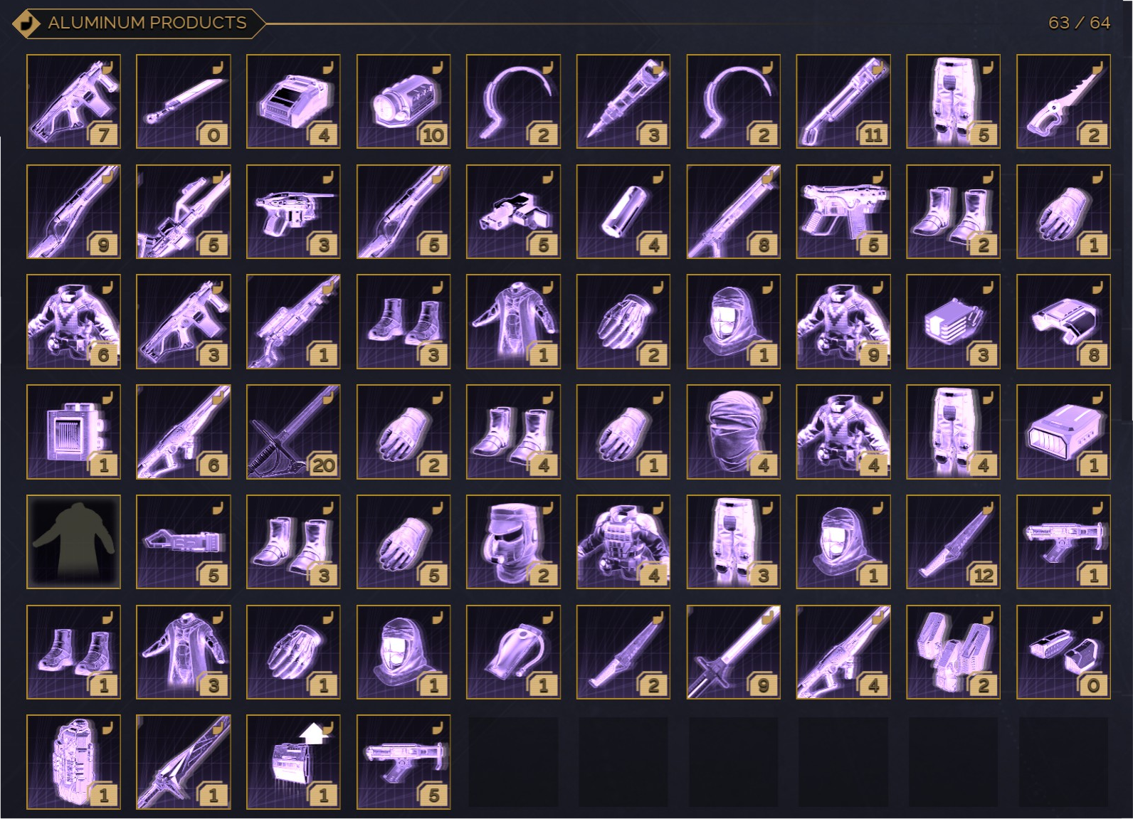 Filter by Copper, Iron, Steel, Aluminium, Duraluminium, and Plastinium. See exactly what’s missing.